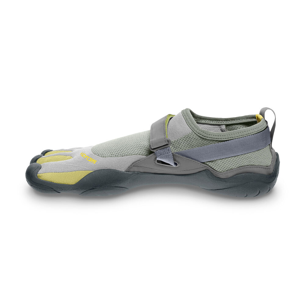 The KSO is arguably our most successful FiveFinger to date, mainly due to its versatility. We added this back into the mix a few years back to celebrate the rebirth of a legend. When you're scrambling up a rocky bluff or bounding along a riverbank, the last thing you want is gravel and grit seeping into your FiveFingers. So why not Keep Stuff Out! The KSO has a snug fit, one of our most minimal sole constructions for maximum ground feel, and a breathable, quick drying upper. The KSO also features a thin, abrasion resistant stretch polyamide and breathable stretch mesh that wraps your entire foot to do just that. A single hook-and-loop closure helps secure the fit.Non-Marking XS Trek performance rubber soles are razor-siped for sure grip.